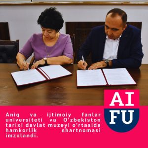 Talabalarimizni O‘zbekistonning boy tarixi va madaniy merosi bilan yanada chuqurroq tanishtirish, ularda ilmiy va nazariy dunyoqarashni shakllantirish hamda milliy g‘urur va iftixor tuyg‘ularini kuchaytirish maqsadida, Aniq va ijtimoiy fanlar universiteti va O‘zbekiston tarixi davlat muzeyi o’rtasida hamkorlik shartnomasi imzolandi.