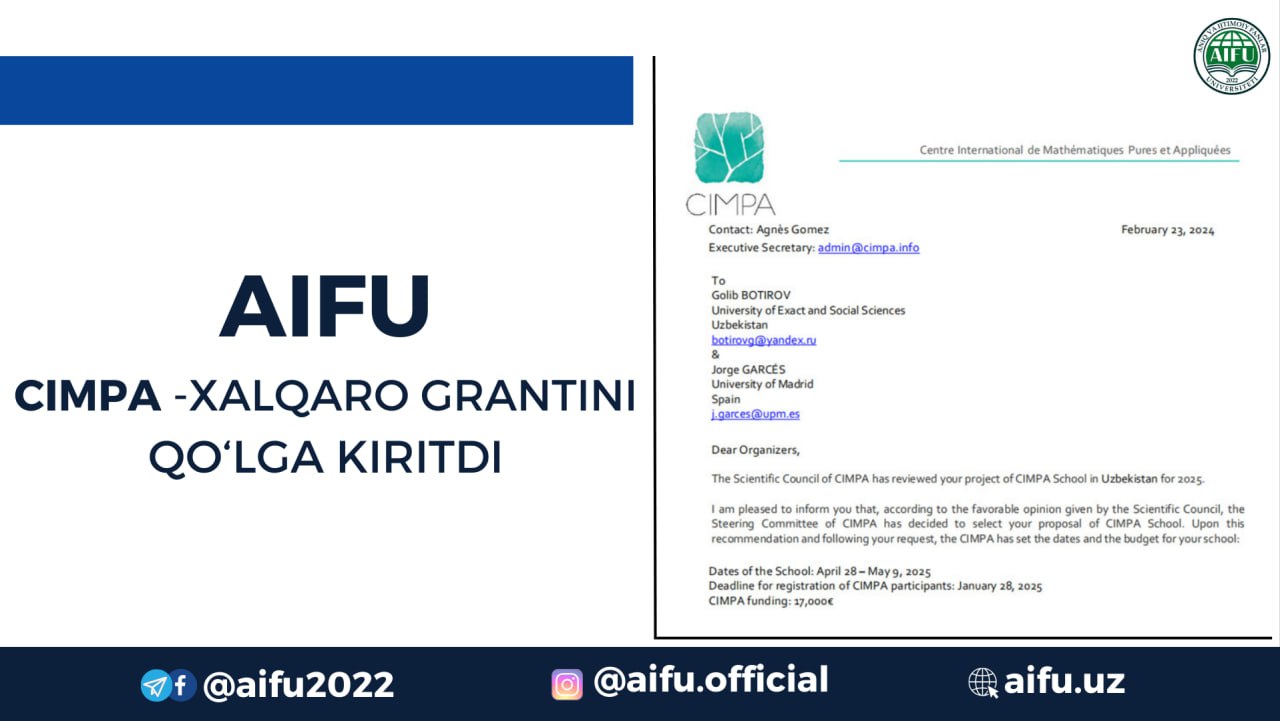 Aniq va ijtimoiy fanlar universiteti CIMPA ning 17 000 yevrolik grantini qo‘lga kiritdi.